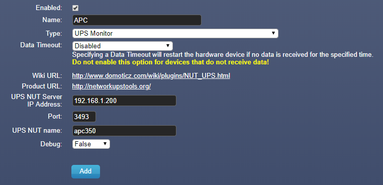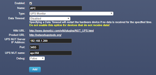 W sekcji Hardware pojawił mi się plugin UPS Monitor. Konfigurujemy go podając nasze parametry (IP, port, oraz nazwę w serwerze NUT, którą skonfigurowaliśmy – u mnie apc350)