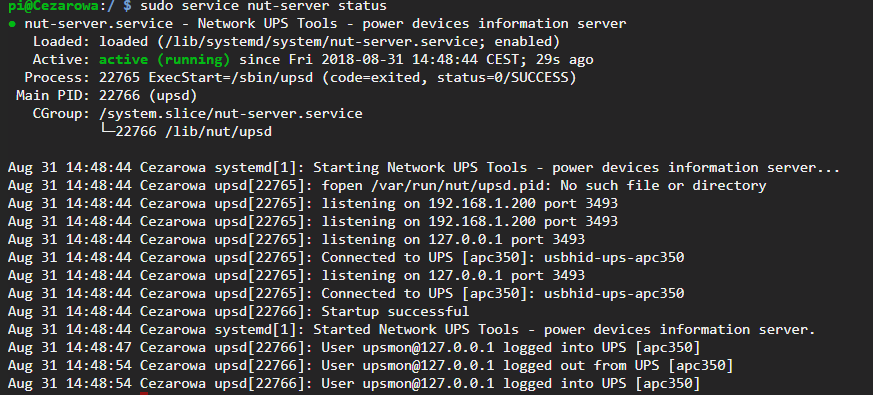 Po tym wszystkim restart serwera i klienta. UWAGA – możliwe, że i wcześniej będziecie musieli wykonać sudo reboot, aby UPS był widoczny i serwisy wstały.