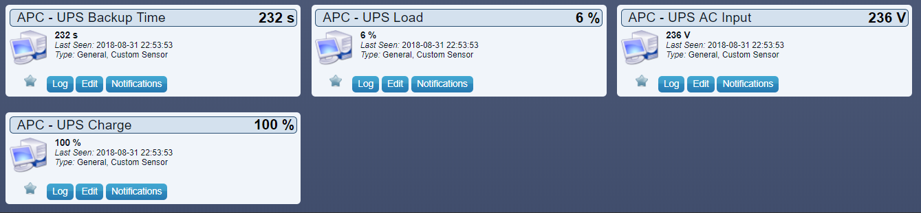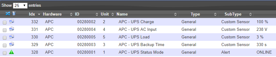 Po chwili w zakładce Devices zaczną nam się pojawiać dane z UPSa: