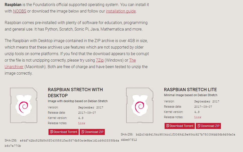 2. w przypadku instalacji Raspbiana – ostatnia dostępna stabilna wersja (w czasie pisania posta – Stretch), pełna ze środowiskiem graficznym albo Lite