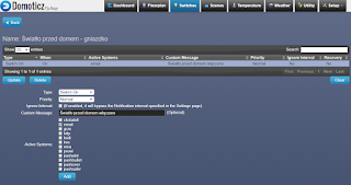 – Zdarzenia, powiadamianie – bezpośrednio w interface Domoticz, skrypty