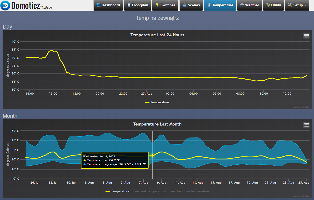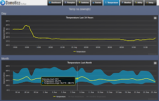Domoticz umożliwia również robienie raportów w formie graficznej. Tutaj – wykres temperatury na zewnątrz