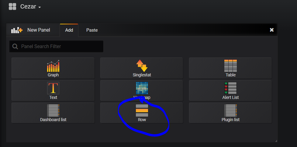 Można to zrobić poprzez dodanie Rows, dostępnego z Add New Panel.