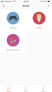 Stworzone sceny dla żarówek są bardzo przyjemne wizualnie. Tworzenie opiera się na wybraniu ikony, wpisaniu nazwy i, na przykład, przypisaniu aktualnego stanu żarówki do sceny.