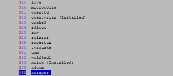 - Manage experimental packages – tutaj już czasem niesamowicie orientalne emulatory – Sharp X68000, Oric 1/Oric Atmos, NEC, TRS-80, ZX81, Minecraft, Quake client, Attract mode (), Pegasus,