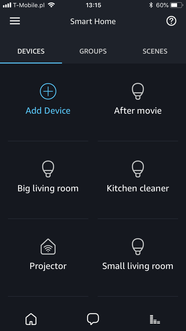 – podział urządzeń na typy (włączniki, światła, czujniki, itp.)