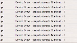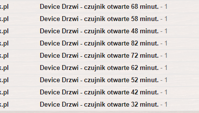6. Funkcja z dnia wczorajszego 😉 Powiadomienie, jeżeli drzwi są otwarte zbyt długo, a jeżeli są, to przez jaki czas. Dla drzwi na taras dałem limit 30 minut, bo są częściej i dłużej otwierane. Dla drzwi na inny taras – krótszy okres, bo praktycznie ich nie używamy. Zwróćcie uwagę na drugi warunek – jeżeli czas jest mniejszy niż 3 * limit – czyli w tym przypadku na przykład dla 'Drzwi – czujnik’ jest to 90 minut – przestań wysyłać powiadomienia, bo widocznie tak ma być. Oczywiście po zamknięciu zmienne zostaną wyzerowane.